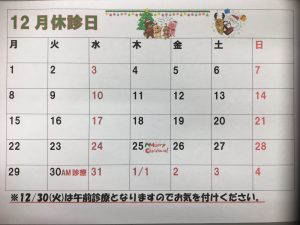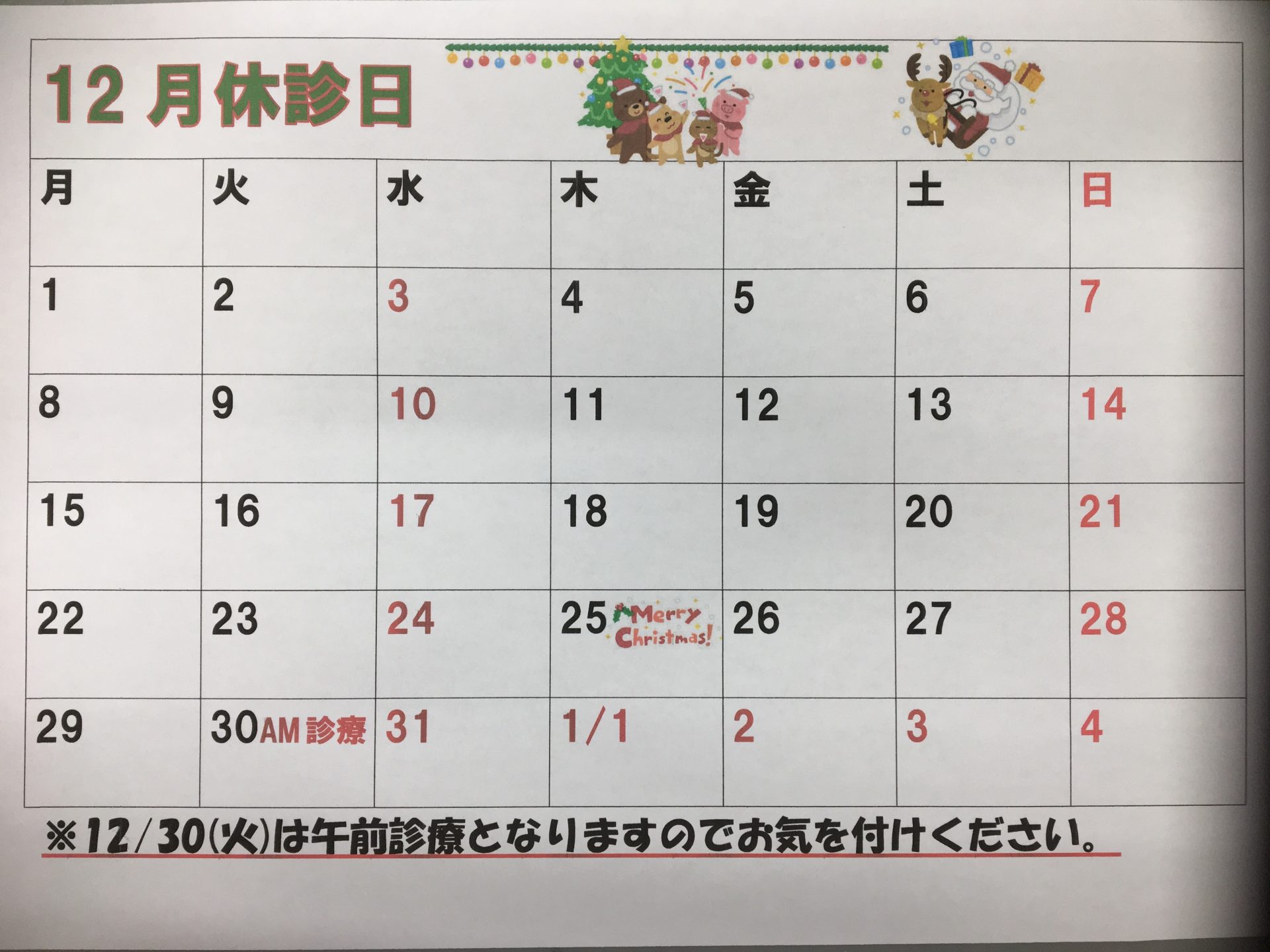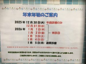 2025年12月31日(水)〜2026年1月4日(日)は休診日となりますのでお気をつけください。